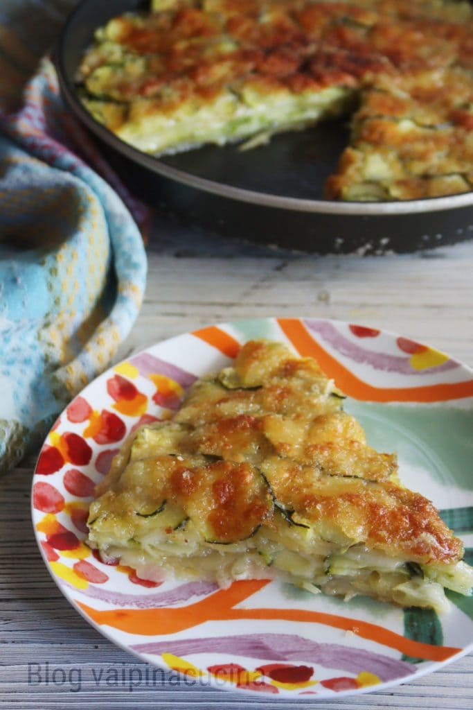 Parmigiana de calabacines y patatas con hortalizas crudas directamente en bandeja sin cocerlas antes. Delicadísima pero con sabor, en un primer momento quería poner salvia, luego opté por el habitual perejil que me encanta y añado en todas partes. A veces tenemos en casa un tesoro sin darnos cuenta, como con 2 calabacines y 2 patatas podemos preparar un plato único con la adición de un queso fresco como la mozzarella de búfala, pero si se quiere también puede ir bien un poco de scamorza o emmental.