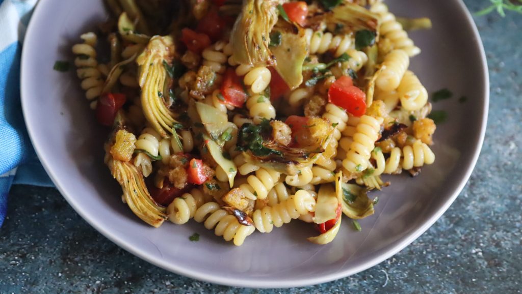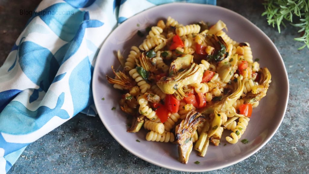Pasta con alcachofas: si las preparas con fusilli serán perfectas, porque abrazan las alcachofas y todo el condimento. Esta verdura, con mil beneficios para nuestra salud, es rica en fibras, tan útiles para nuestra digestión y para el control de la glucemia. Con solo 22 calorías por 100 gramos de alcachofa, es ideal para quienes siguen un régimen de alimentación controlada. Obviamente no os enumero las sustancias minerales como calcio, hierro, potasio, magnesio y varias vitaminas, porque ya las conocéis. Si para la pasta con alcachofas queréis un primer plato más ligero, hay algunos trucos que se pueden utilizar tranquilamente, como no freír las alcachofas sino cocinarlas al horno o al vapor.
