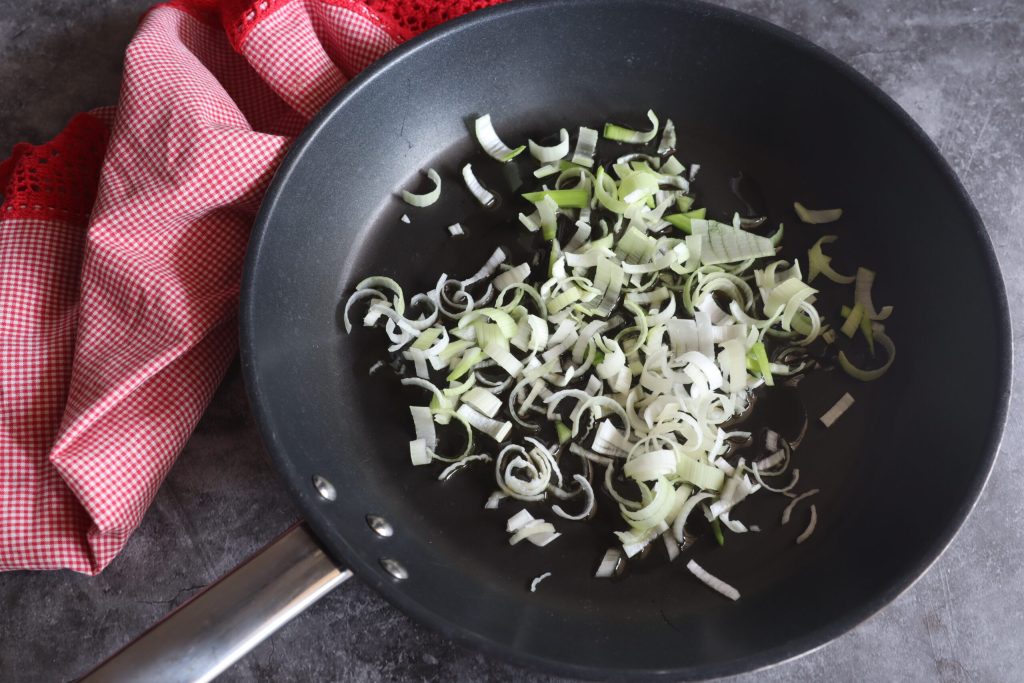 Doren el puerro en la sartén con el aceite de oliva virgen extra.