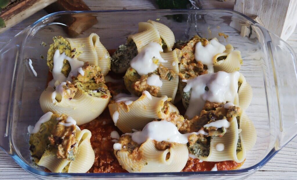 Pasta conchiglioni rellenos, para todos nosotros la pasta siempre ha sido el plato principal de nuestros platos, pocos sin embargo conocen su origen tan antiguo. La pasta de hecho se remonta a hace unos 7000 años en su forma rudimentaria con los primeros asentamientos cuando el hombre comenzó con la recolección de trigo. Hoy en día, por muy buena que sea, la pasta artesanal y hecha en casa no se utiliza mucho por la falta de tiempo y de habilidad, el lado positivo sin embargo es sin duda la rapidez con la que se cocina y la variedad de recetas que hoy podemos hacer con ella, entre ellas está la mía… la pasta conchiglioni rellenos es una buena alternativa a la habitual lasaña o canelones rellenos a menudo preparados para las fiestas y cenas familiares, en algunos casos también puede usarse como plato único porque es muy sustanciosa y atrae la atención incluso de los más exigentes.