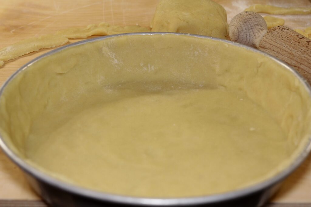 Prepara las tiras de pasta quebrada y colócalas en la pastiera cruzándolas. Hornea a 180° durante 60 minutos.