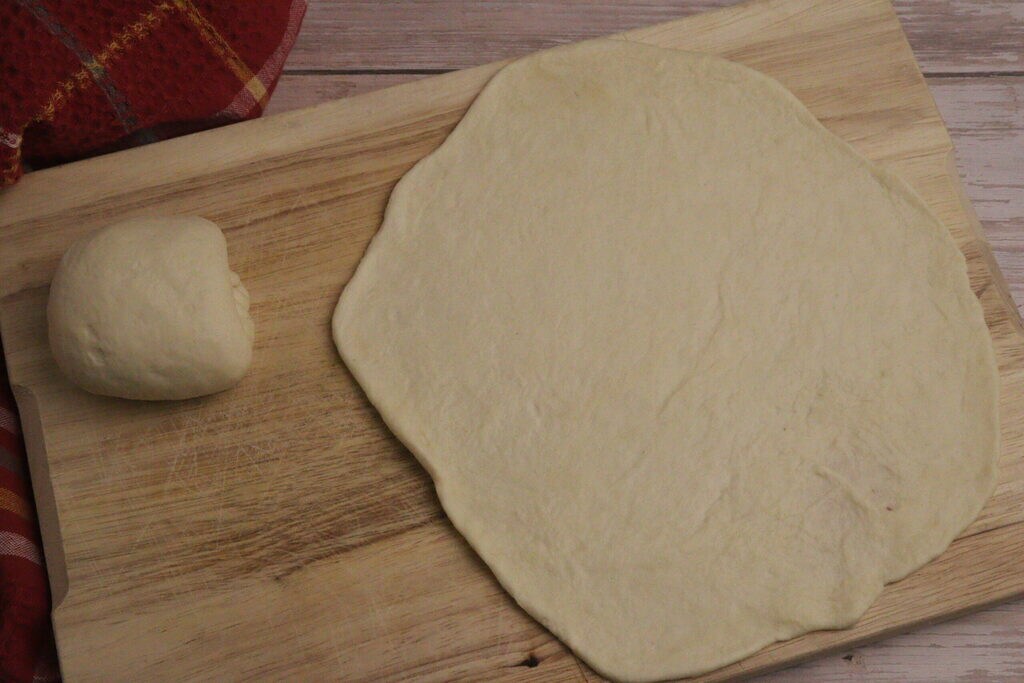 • y pasado el tiempo divide la masa en 4 bolas y extiéndelas hasta un diámetro de 18 centímetros aproximadamente.