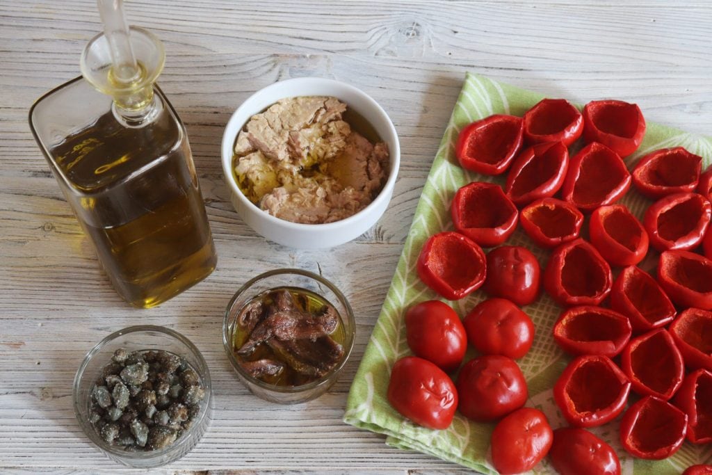 Pimientos rellenos de atún y anchoas con alcaparras y preparados en aceite como saben hacer bien en Calabria. Esta receta tiene orígenes calabreses y no solo, también se encuentran rastros en Campania, en todo el sur y en Piamonte. El pimiento es un vasodilatador y por este motivo aporta beneficios a la circulación y por lo tanto al corazón, es conocido por sus propiedades y virtudes medicinales. Es cosa sabida que los pimientos picantes están siempre presentes en todos los platos del sur y en particular en Calabria donde se producen mayormente estos rellenos en aceite. Consumido seco al sol o fresco, el pimiento es uno de los ingredientes de muchas salsas preparadas en todo el mundo.