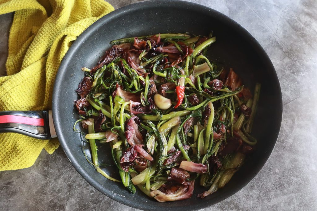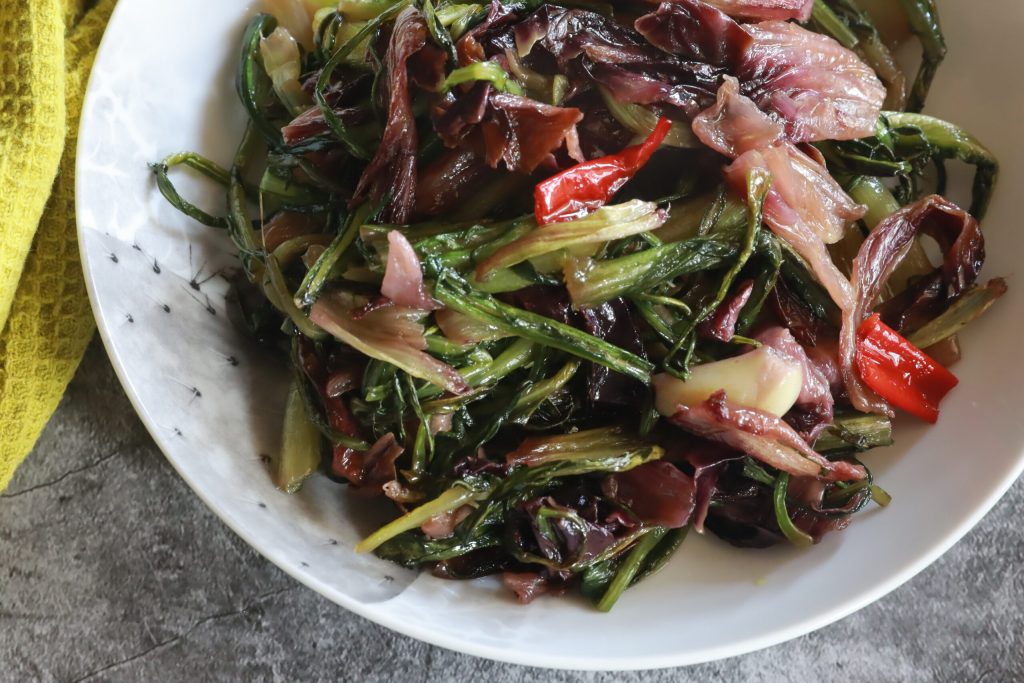 Puntarelle y radicchio estofados