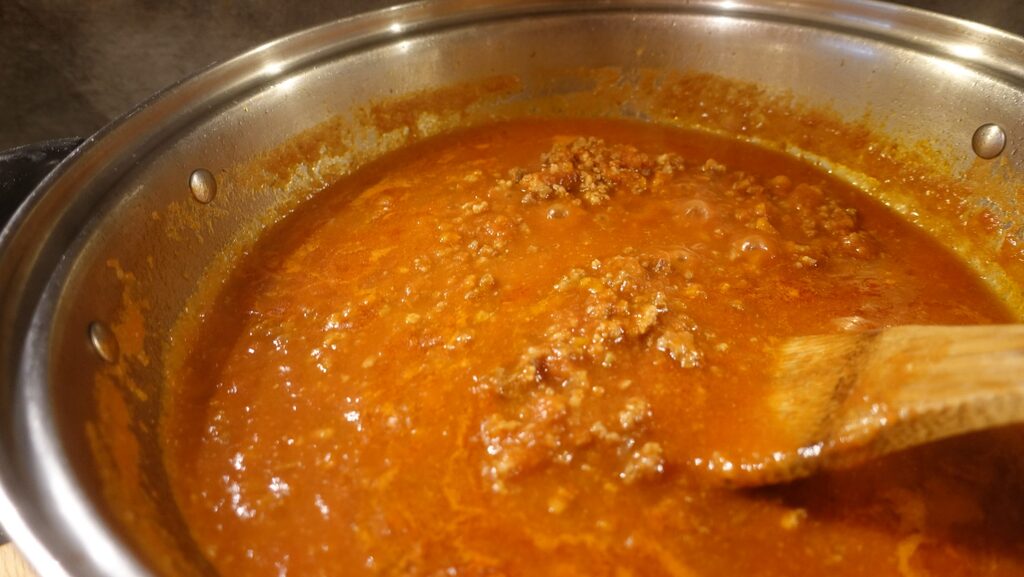 Cocina durante 2 horas a fuego lento. Remueve a menudo para evitar que el ragú se pegue al fondo.