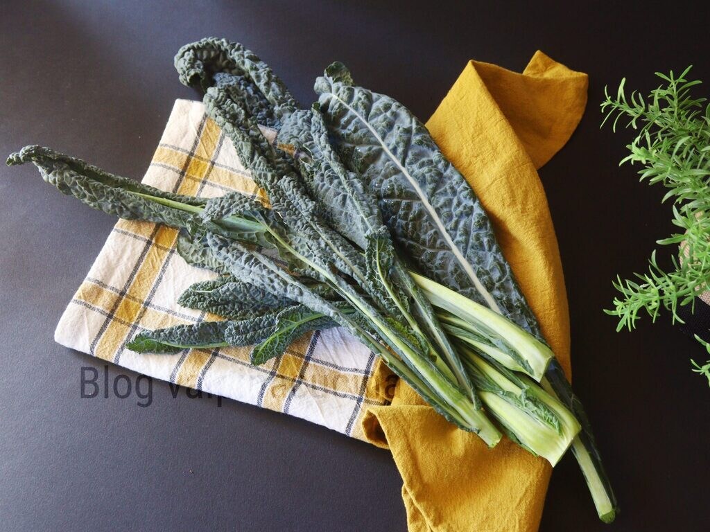 Después de lavar bien la col negra y la col verde, las corto en trozos y las dejo escurrir.
