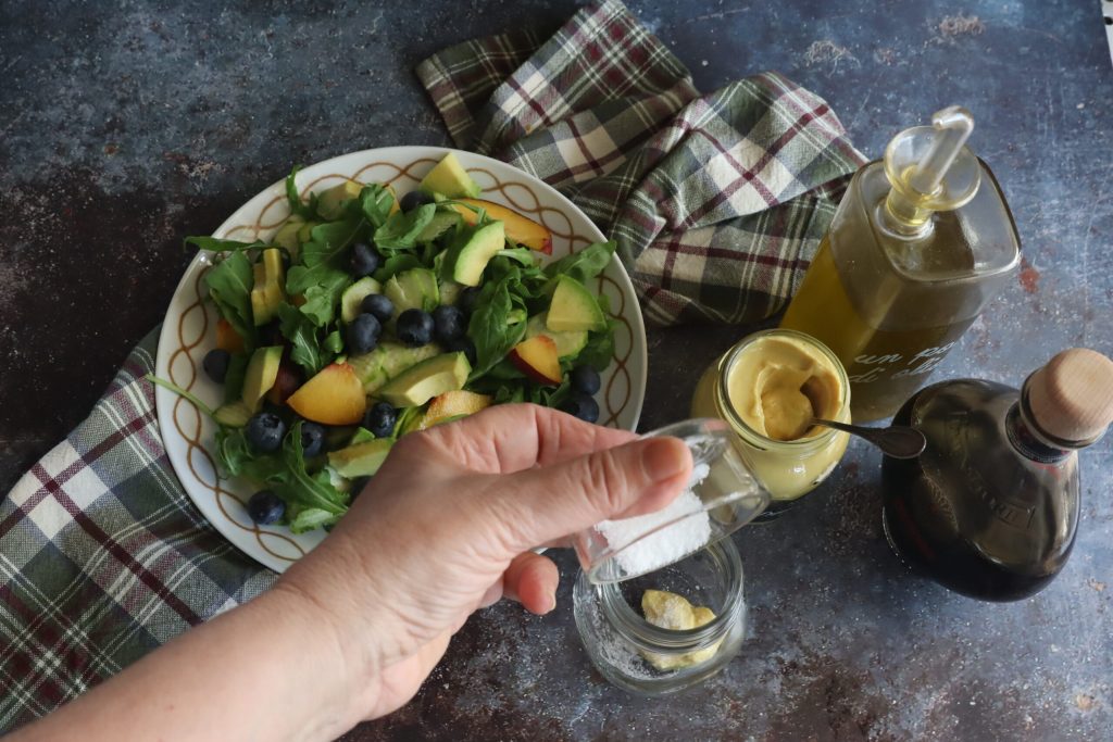 Para aliñar, mezclo los condimentos en el frasco, incluida la sal.