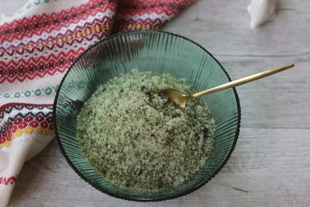 El sal aromatizado me gusta fino, así que trituro un poco más, vosotros podéis elegir el modo medio o dejarlo en grano grueso, a vuestro gusto.