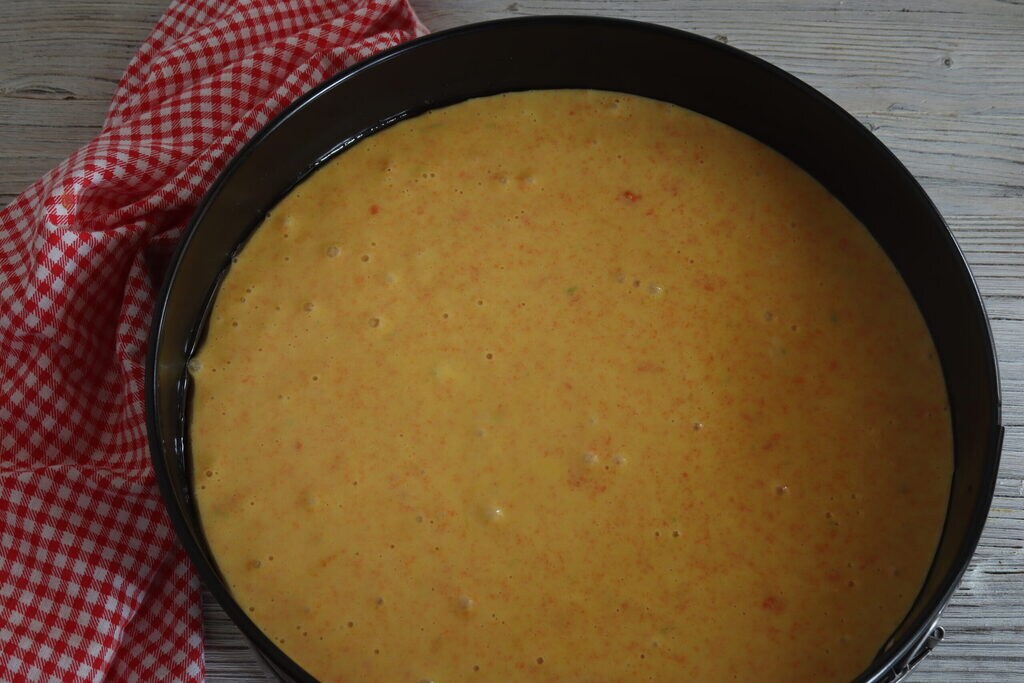 • Pongo en la amasadora el azúcar con la cáscara de limón rallada, los huevos y los hago espumosos, añado la mantequilla blanda, la levadura con la harina tamizadas, la calabaza en crema y las almendras trituradas. Una vez que se han amalgamado todos los ingredientes juntos los