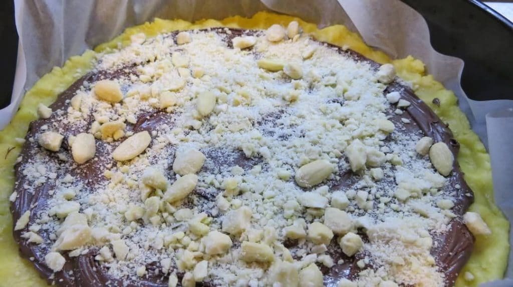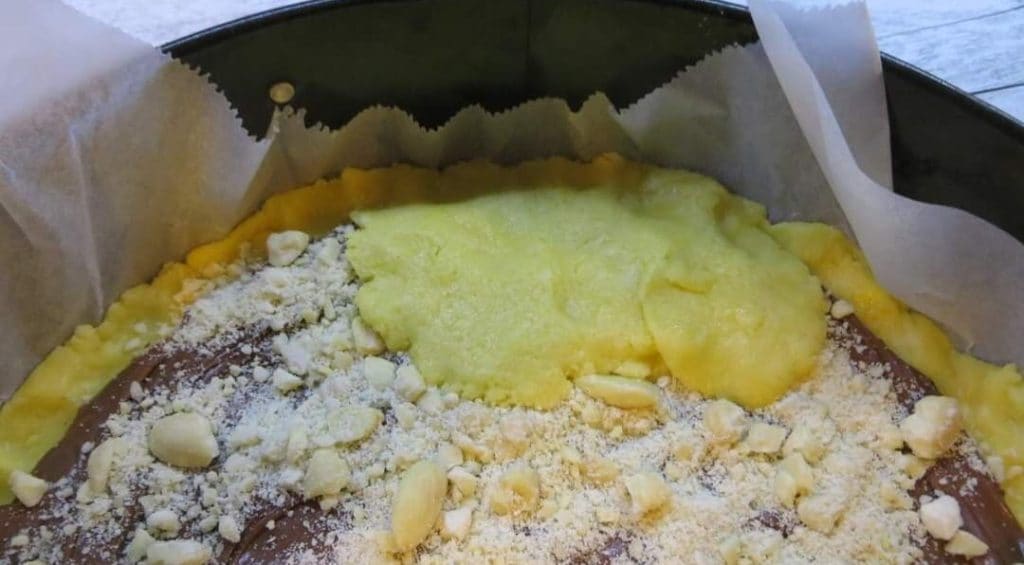 Cubro la masa quebrada con Nutella