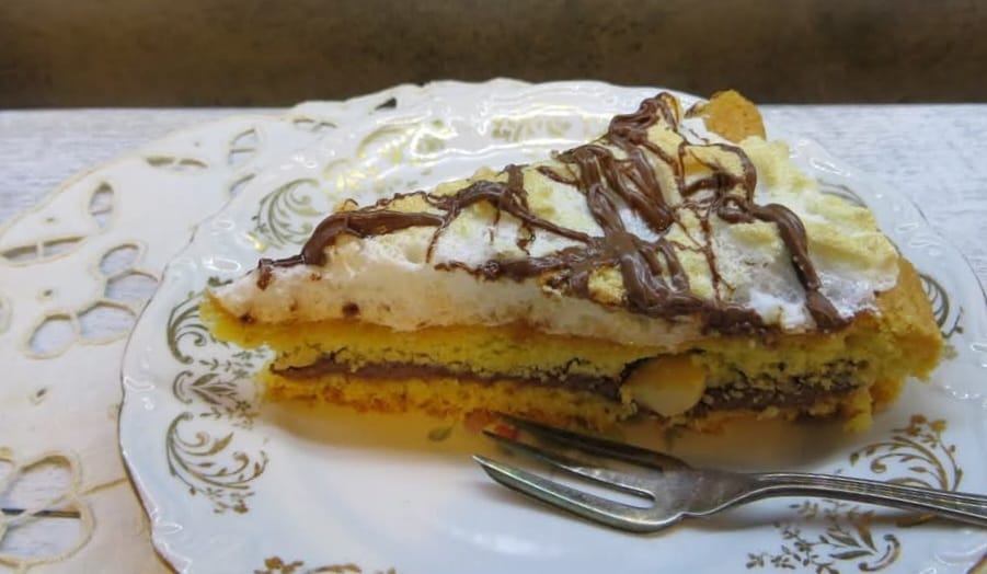 Tarta Ricciolina del Monte Amiata, una verdadera receta anti-desperdicio. Utilizando la clara de huevo sobrante de la masa quebrada, se prepara una montaña de merengue que, junto con todo lo demás, incluida la famosa Nutella, se convierte en un comfort food para verdaderos golosos. Sobre todo en verano, cuando el calor se siente excesivamente, me encanta pasear por los bosques, en la montaña, y el Monte Amiata para esto no tiene rival, y es aquí donde descubrí en una pastelería esta maravilla. Como con muchas recetas, también para la Ricciolina se presumen varios reconocimientos por el descubrimiento, pero en realidad ya se sabe que es difícil rastrear realmente al verdadero autor. Una cosa es cierta: quien inventó la tarta Ricciolina del Monte Amiata no desperdició ni siquiera las claras de huevo sobrantes de la masa quebrada, las usó preparando el merengue para cubrir el dulce, que ya de por sí era abundantemente suculento.