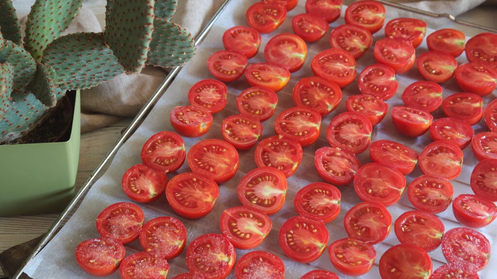Chicos, para preparar 360 gramos de tomatitos secos se necesitan 2 kg de los frescos, ¡balanza en mano!