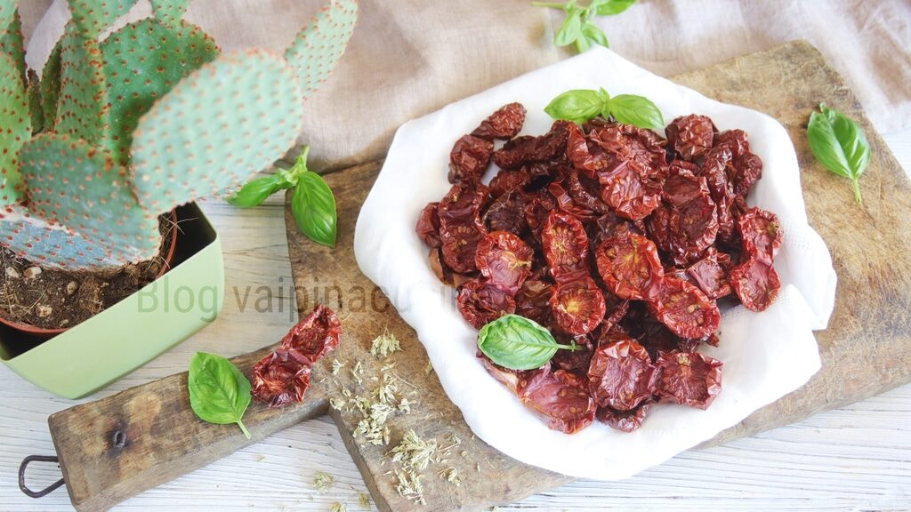Tomatitos secos y cómo prepararlos de manera fácil pero no rápida, ciertamente, se requieren muchas horas. No teniendo la posibilidad de extender al sol los tomatitos para secar, he utilizado mi horno que entre las muchísimas funciones que además de cocinar también los alimentos al vapor tiene también la modalidad deshidratación, un verdadero aliado en la cocina. De un reciente viaje a Puglia regresé a casa con varios kilos de tomatitos, eran tan dulces y sabrosos que pensé de inmediato en cómo poder conservarlos para utilizarlos en los meses venideros. Obviamente una de las formas es secarlos como se acostumbra en las regiones del sur de Italia y al no tener suficiente sol en septiembre, he utilizado un método facilísimo ayudándome con mi súper horno con deshidratador.