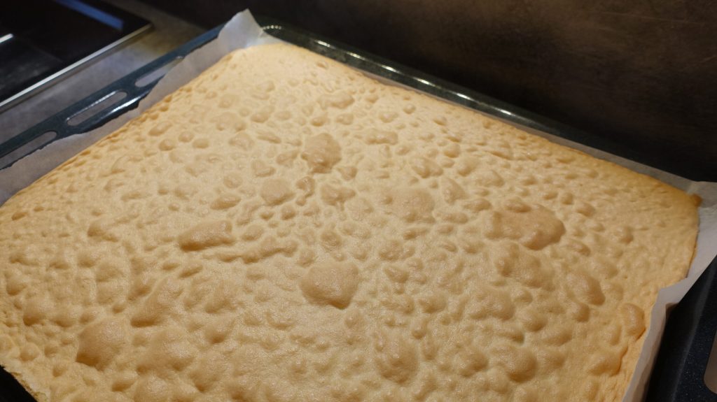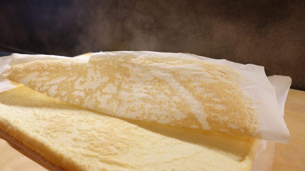 Dejar el tronco con el papel para hornear hasta que se enfríe completamente.