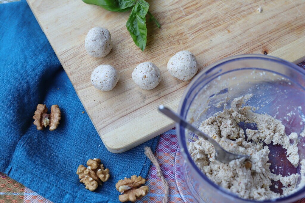 Trufas de nueces y tofu para un aperitivo o entrante rápido. Exquisitos para toda la familia y deliciosos acompañados de un buen vaso de cerveza fría. Un aperitivo sin gluten ni lactosa, pero también para quienes han optado por una alimentación vegana o vegetariana. Cuando probé por primera vez esta receta, descubrí que las nueces y el tofu juntos son una verdadera combinación. Esta receta es un entrante perfecto para todas las ocasiones rápidas y de último minuto.