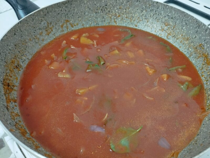 • Poner las berenjenas a cocinar en la salsa, si es necesario añadir un poco de agua, cocinar durante una hora.