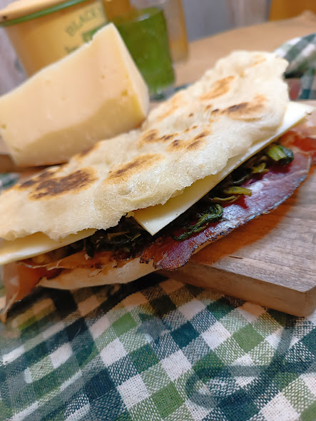 • Mientras tanto, calentar el testo o la sartén y luego cocinar la crescia, primero de un lado y luego del otro.