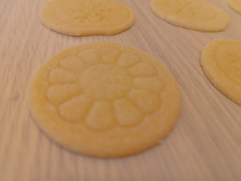 Desafortunadamente, no tengo el sello para decorar los corzetti, no el de madera, así que usé el de las galletas…¡Creo que el resultado es bueno!