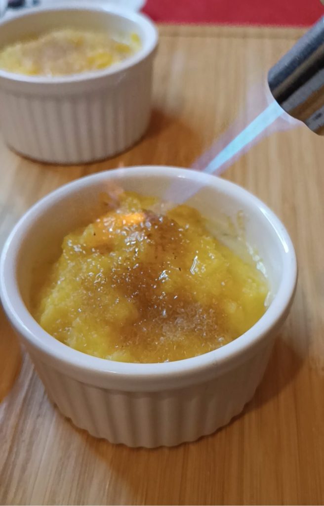 En esta ocasión os muestro la crema en cuencos de cerámica, para obtener un efecto wow, prepara una masa quebrada y rellena con la crema, que luego flamearás. Como escribí arriba, también puedes dejarla enfriar completamente y formar quenelles para servir con galletas o una porción de tarta