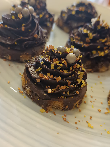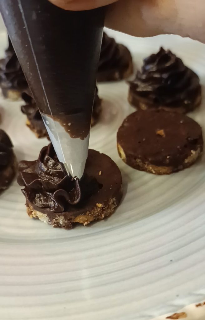• Organiza las bases y transfiere el resto del chocolate en la manga pastelera con boquilla de estrella