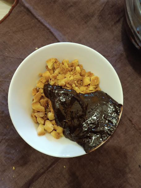 El chocolate tiene su propio aroma y fragancia particular, el oscuro también fuerte, por lo que se necesitaba una dosis que permitiera un buen contraste aromático, sin sobrecargar el gusto. Algunas hierbas aromáticas utilizadas en la cocina crean «efecto detergente» que quería evitar… Agregando cáscara de naranja, entre dulce y amargo, aroma que bien se complementa con el romero, me pareció el justo acompañamiento