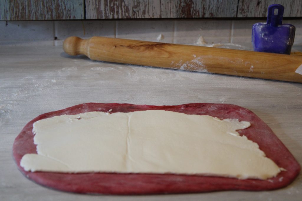 Croissant de remolacha y frutos del bosque. El tiempo siempre es tirano y hacer levaduras no siempre consigo encajar los varios pasos, por lo que voy despacio. Ahora que también hay que cuidar el huerto de casa, aún menos. ¡Pero de vez en cuando logro excederme! ¡Croissant bicolor! Me hubiera gustado usar polvo de frambuesa, luego pensé en la remolacha que uso para los salados, y por su hermoso tono, su aroma, decidí intentarlo. Los croissants los preparo a menudo, bicolor un poco menos, requiere más tiempo, pero vale la pena probar y combinar nuevas armonías aromáticas.