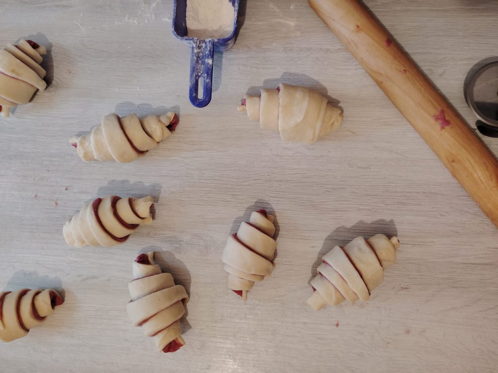 Adoro los frutos del bosque, en este caso usé las gotas, este año aún no tengo mis confituras, me adapté. En Valle Po los arándanos están casi maduros, las fresitas están para recoger y las frambuesas siguen a los arándanos. Vuelvo a los croissants después de haberme extendido un poco.