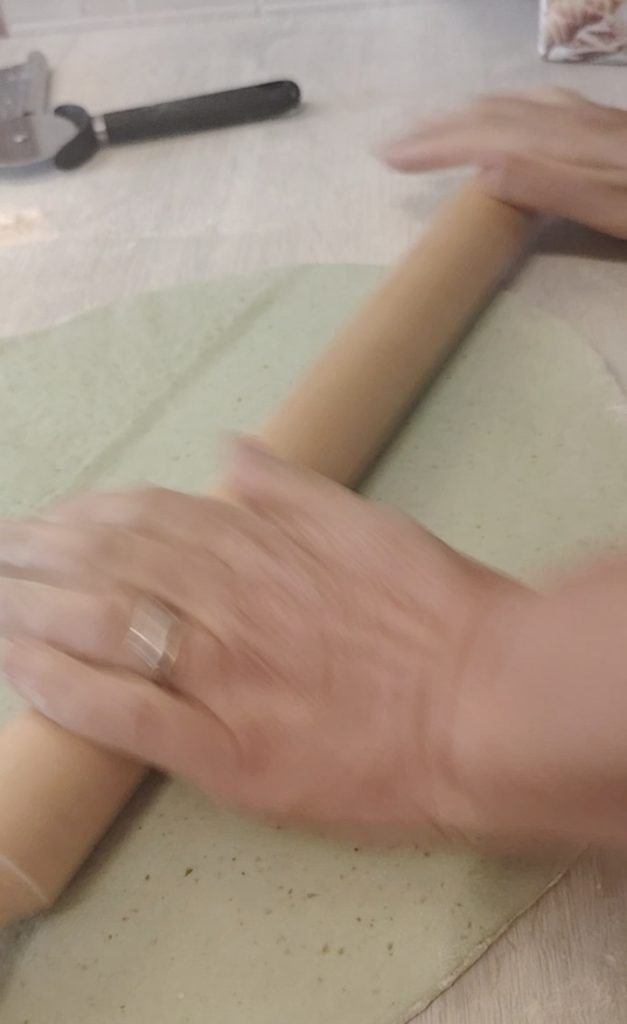 Sacar de la nevera, dar una vuelta a la masa, y extender a un grosor de medio cm.
