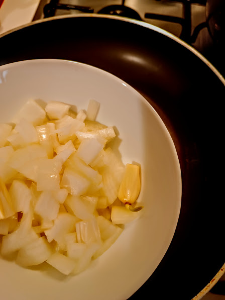 Cuando hayas terminado de preparar los croset, sofríe la cebolla picada fina o en trozos en aceite de oliva junto con el ajo.