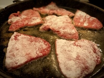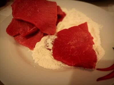 Receta de escalopines a la pizzaiola. Carne, tomate y orégano.