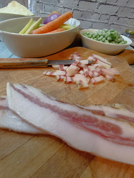 - 2 lonchas panceta (tesa) (no demasiado finas)