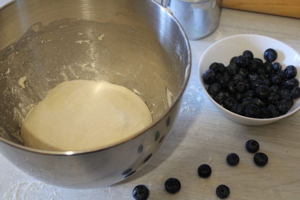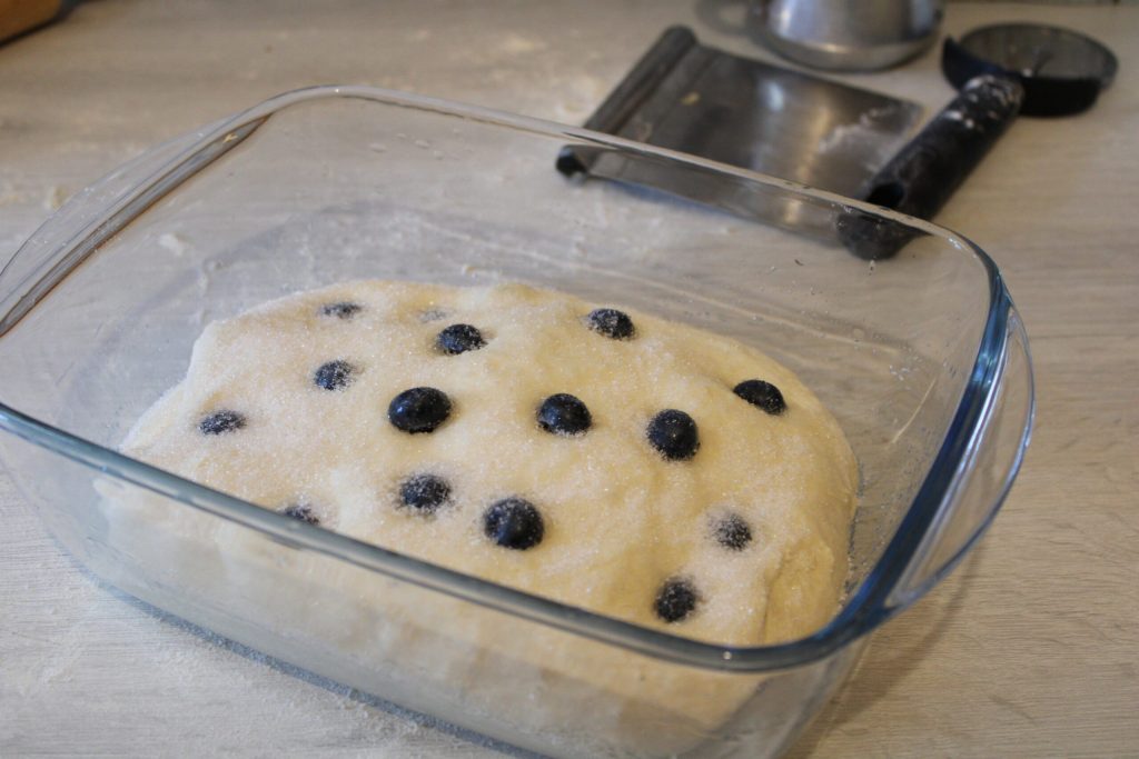 Focaccia con arándanos. Temporada de arándanos en valle Po, hay que aprovechar esta delicia. Una vez al año, apenas recolectados, entran en mi cocina. Sigo pensando que seguir las estaciones para consumir frutas y verduras me da la posibilidad de conocer y consumir siempre nuevas, y no aburrirme nunca. En el huerto la producción de verduras es constante, y cada mes se añade una variedad diferente, la fruta la recolecto de mayo a septiembre, a menudo sustituyo una comida o conservo los excedentes. Los arándanos, al igual que otras frutas de verano, prefiero recolectarlos directamente, y el día que algo cambie, me adaptaré al cambio.