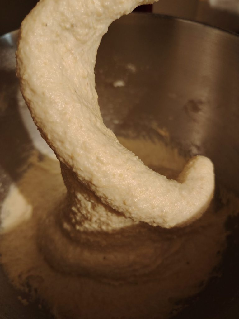 Para la masa he utilizado una hidratación medio-alta, el 60%, aceite aromatizado con romero y queso certosino, de pasta blanda, ligeramente ácido y con una curación de unos veinte días. Ideal para sustituir al squacquerone DOP, de leche de la Romagna, que me encanta especialmente, porque tiene una textura cremosa que se adapta muy bien a las focaccias y también a las piadinas con jamón crudo 😁😋 Así que elegid vosotros cuál utilizar.