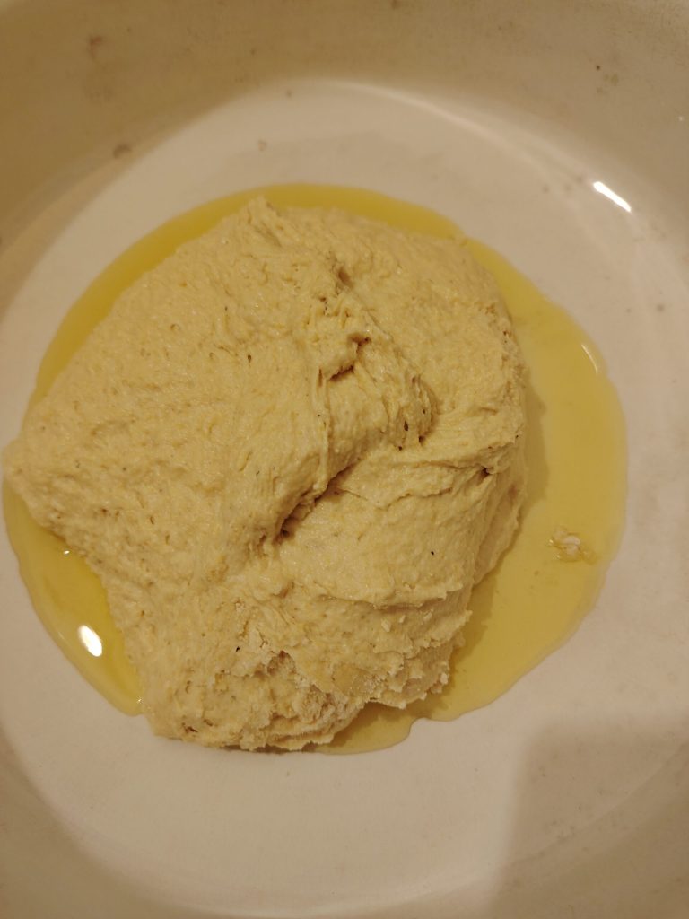 Trascurrido el tiempo necesario, dividid en porciones iguales si preferís raciones individuales, o en dos bandejas rectangulares. Engrasad bien y colocad las porciones ayudándoos con las yemas de los dedos. Dejad reposar otra hora aproximadamente y…