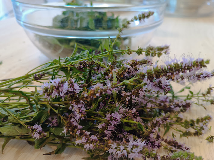• Tengo la menta en el huerto, recogida y limpia… Con las flores haré tisanas