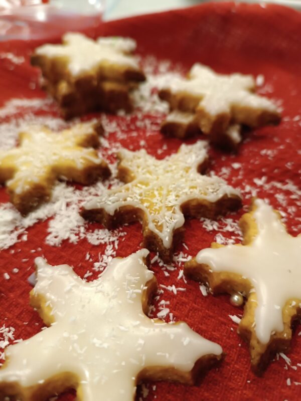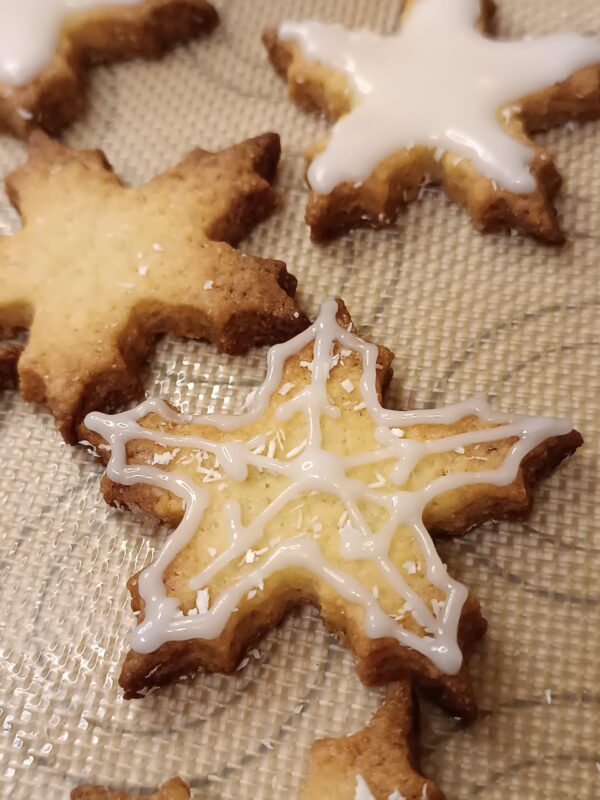 3 2 1 aquí vamos… Copos de nieve con jengibre con glaseado de azúcar y coco