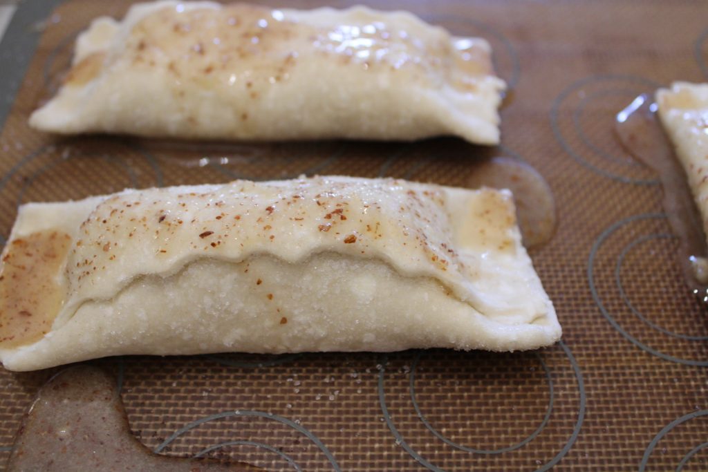 Una vez listo, distribuidlo sobre los hojaldres. Más o menos glaseado, una vez cocido os regalará una textura crujiente diferente. Yo hice de dos tipos.