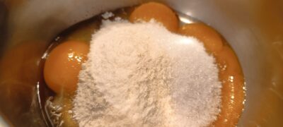 Primero preparamos el bizcocho. Batimos durante diez minutos los huevos y el azúcar, hasta obtener una mezcla suave y espumosa. Añadimos la harina mezclando suavemente y vertemos el contenido en un molde engrasado. Esta cantidad es adecuada para un molde de unos 20/22 cm. Mi zuppa inglesa es cuadrada, vosotros elegid la forma. Horneamos a 200 grados durante unos 20 minutos, no abráis la puerta demasiadas veces, de lo contrario se desinfla, cuando veáis la coloración dorada haced la prueba de cocción con un palillo. Tan pronto como esté lista, desmoldad y dejad enfriar.