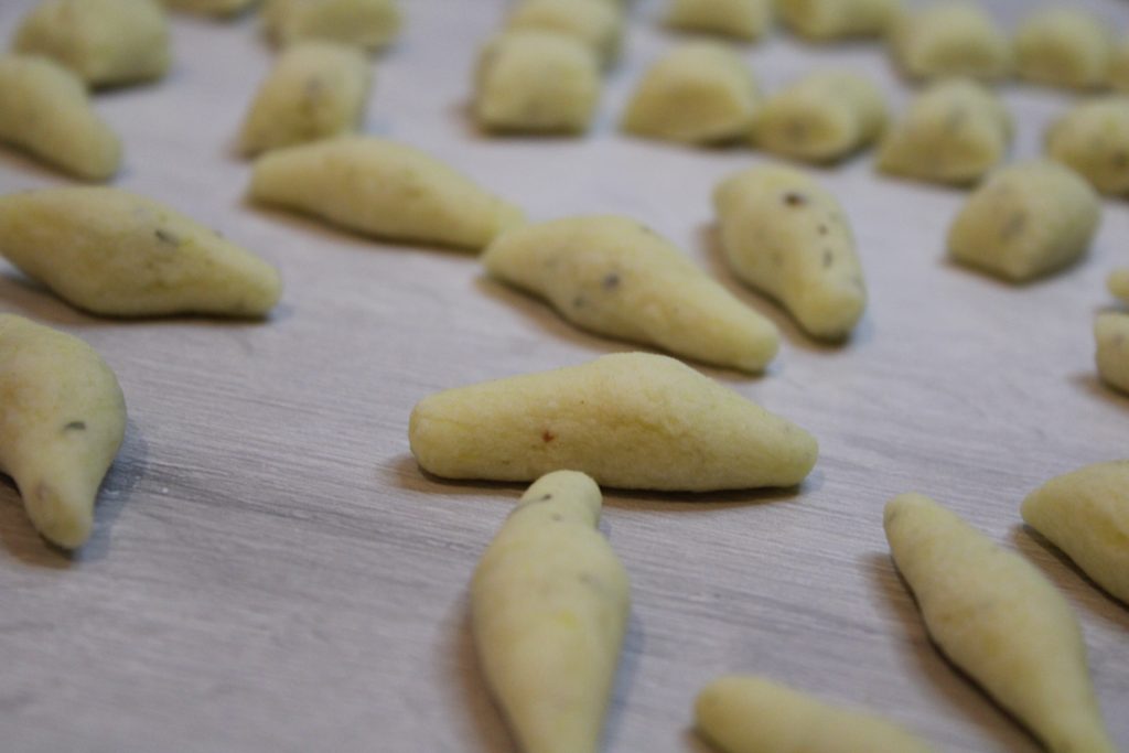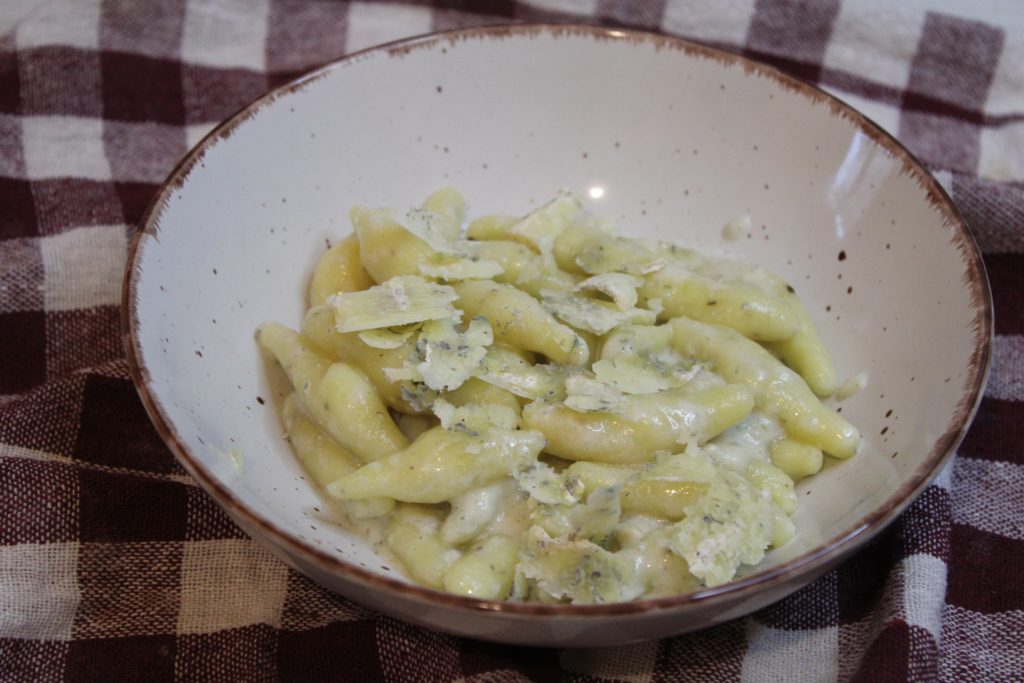 Las ravioles con queso azul del Valle Po con aroma de tomillo. En el Valle Po los ñoquis también se hacen así. Las ravioles, un primer plato que tiene sus raíces en el cercano Valle Maira, donde tradicionalmente nacieron. Una delicia simple como a menudo escribo, seguramente para chuparse los dedos. Se preparan con una masa esencial y robusta con queso local, patatas y en el caso de esta receta también con tomillo, que con su intenso aroma combina bien con este plato tradicional. Condimentados con una rica y aromática fondue de queso azul, producido en la zona. Sabores que cuentan las tradiciones montañas modernas conectadas al pasado. Un sabor que habla del lento y precioso transcurrir del tiempo que espera. La receta que os presento es para 4 personas