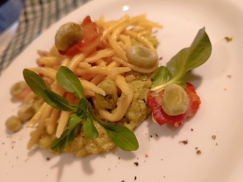 Habas frescas, pasta fresca de sémola remolida…