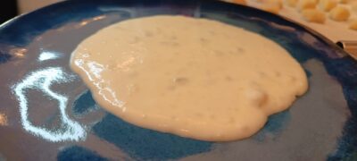 Preparad la crema de gorgonzola… En un cazo, poned la mantequilla y dejad que se derrita, añadid la harina y mezclad bien con la leche… Finalmente, añadid el gorgonzola en trozos y dejad que se derrita. Mantened a baño maría caliente.