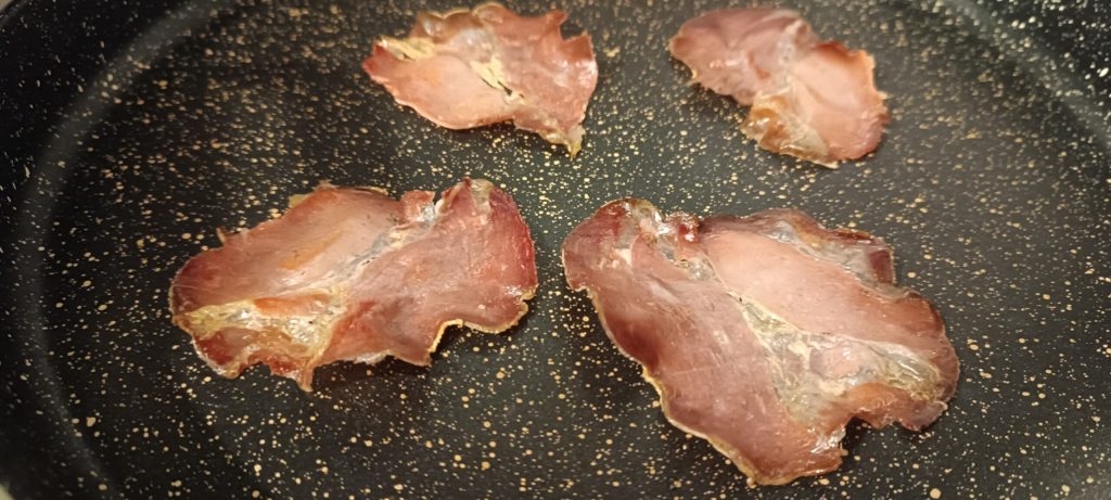 He decorado con dos lonchas tostadas de coppa… Le dan ese toque extra al plato, eventualmente las podéis cortar en tiras.