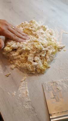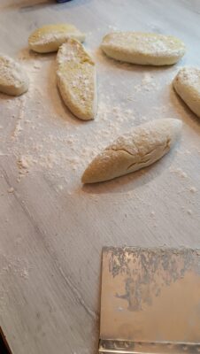 Y después de hacer una bola, cortad en trozos y… Poned la olla en el fuego con agua salada y cubrid para llevar a ebullición…