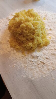 Con las patatas de la temporada pasada esta mañana he decidido preparar los ñoquis… Y se sabe, las patatas viejas son ideales para el buen resultado del plato.