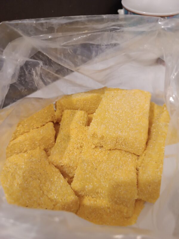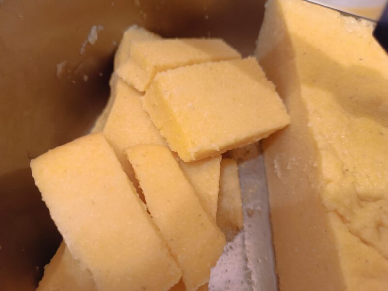 • Prepara la polenta de la manera tradicional, deja enfriar y corta en palitos