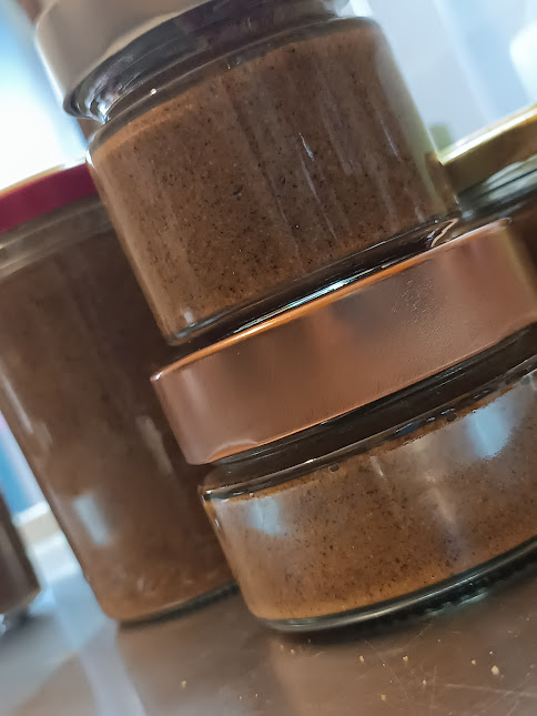 Antes de transferirla a los tarros, prefiero unir toda la pasta para poder mezclarla y obtener una crema homogénea, en sabor.