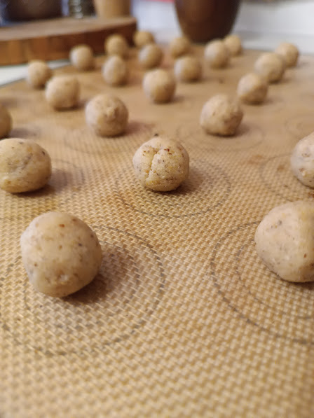 • Luego forma pequeñas bolitas poco más grandes que una avellana. Hornea a 175 grados hasta que estén ligeramente doradas, y asegúrate de que estén cocidas por dentro. Tomará de 15 a 20 minutos, depende del horno.