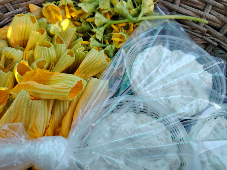 Del huerto entre flores de calabacín y albahaca perfumada