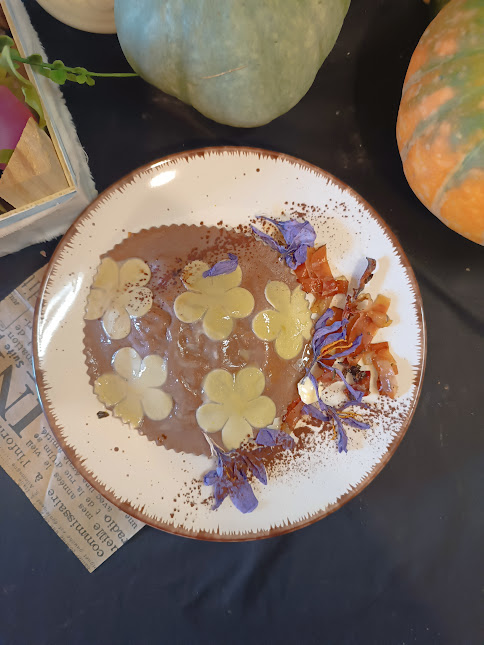 El cacao lo encontraréis tanto en la pasta como color natural, como en el condimento final, para aportar una nota amarga e intensificar el color del condimento.