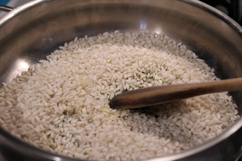 Una olla para el caldo de verduras, una sartén para las tostadas, una cazuela para el risotto.